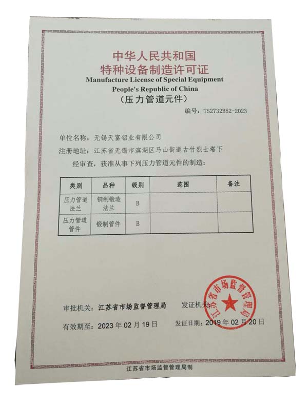 無錫天富鋁業專業生產各類焊接鋁管、無縫鋁彎管、任意角度無縫鋁彎管、焊接鋁彎管、鋁三通(鍛件)、鋁肩圈、鋁縮接、鋁管帽、法蘭、焊接襯圈、“O”型圈、非標無縫鋁彎管、接管、法蘭接頭堵頭、U型彎管帶外螺紋、鋁套管。可根據用戶需求定制各類彎管、肩圈、縮接、管帽、襯圈、接管、鋁套管,可按照用戶圖紙定制。同時也承接不銹鋼、碳鋼及其他材料的彎管、肩圈、縮接、管帽、襯圈、接管等。我們擁有壓力管道設備生產許可證, 可從事特種設備的制造! |